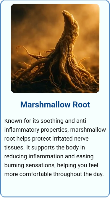 Helps reduce chronic inflammation along nerve pathways — one of the leading triggers of neuropathy — allowing irritated nerve tissues to calm and recover.
